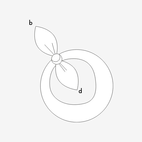 Place it on the head and tie “b” and “d” into a double knot. Enjoy!