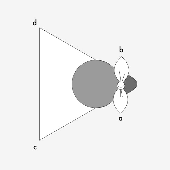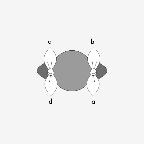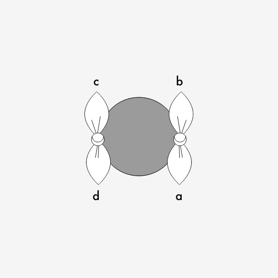 Tie “a” and “b” together into a knot at edge of the pot twice.