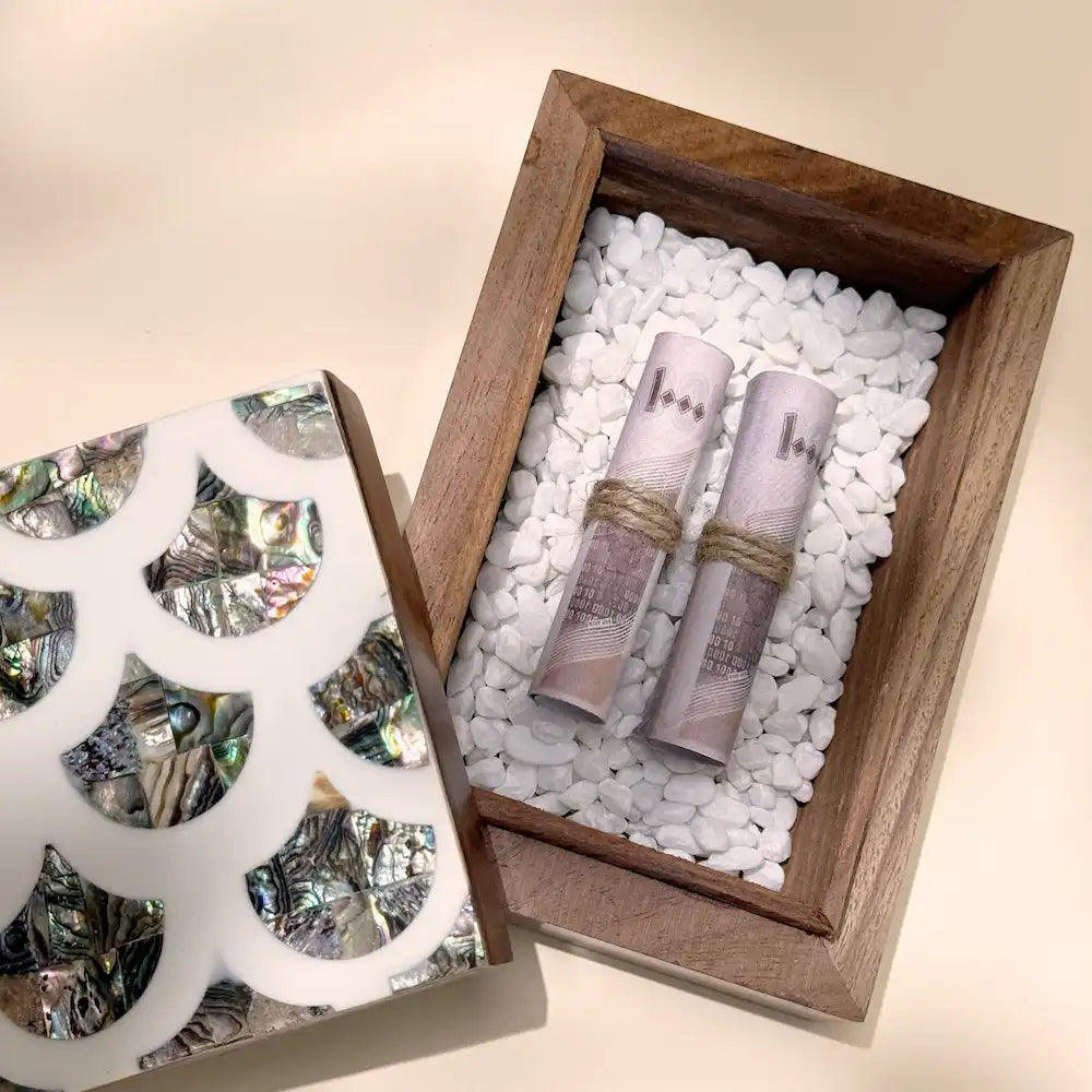 A Wooden Box with a delicate cutout design, perfect for placing cash or small keepsakes.