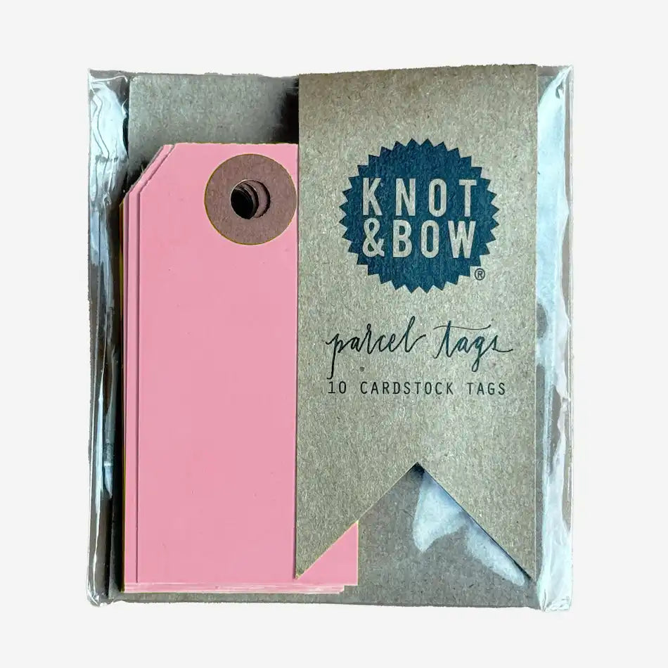 These Knot & Bow Parcel Tags are a stylish and functional way to add a personal touch to your gifts. The set includes 10 high-quality cardstock tags in a vibrant blue color, each featuring the "Knot & Bow" logo and the phrase "parcel tag" printed in a rustic font.
